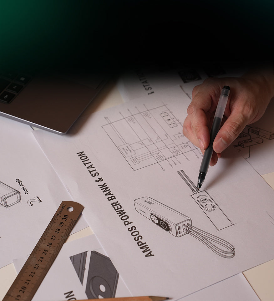 AMPSOS is an innovative 5-in-1 smart charging hub developed through a deep design and engineering process.