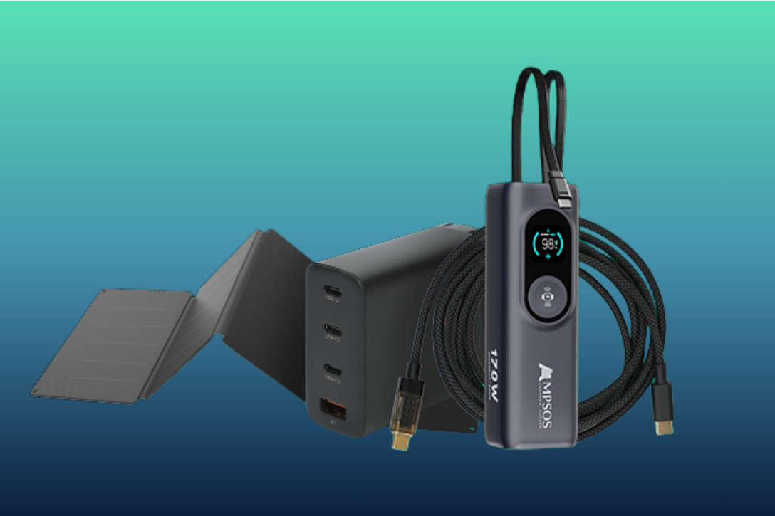 With dual braided USB-C cables, 3× 100W USB-C ports, USB-A, and an Apple Watch charging pad, AMPSOS delivers unmatched versatility at home, on the go, or off-grid.